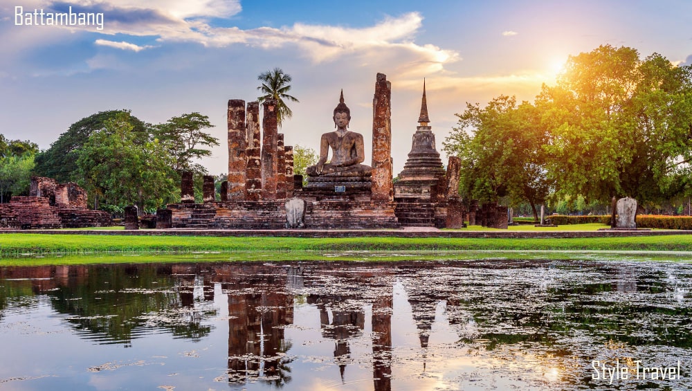 De manhã cedo, transporte para Battambang. A viagem demora cerca de 5 a 6 horas a chegar ao destino final. No caminho, faremos uma paragem no Templo Udong, a antiga capital de Oudong. No caminho, fará também uma paragem em Phnom Praset para ver um templo pré-angkoriano do século VIII e um Buda reclinado. Continue a nossa viagem até Battambang e faça o check-in no hotel para relaxamento e tempo livre.