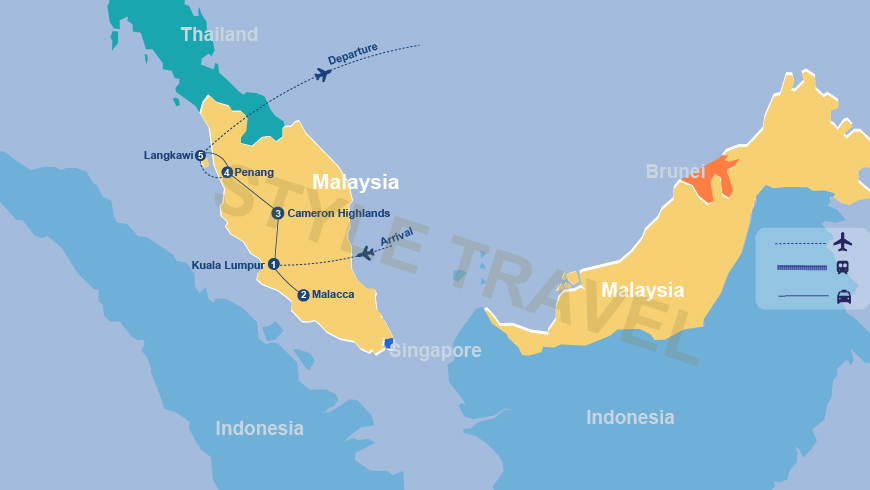 Chegando ao Aeroporto Internacional de Kuala Lumpur, será transportado por estrada para Malaca, com uma viagem de 02 horas. À chegada, faça o check-in no hotel para um breve descanso. Livre no lazer.
