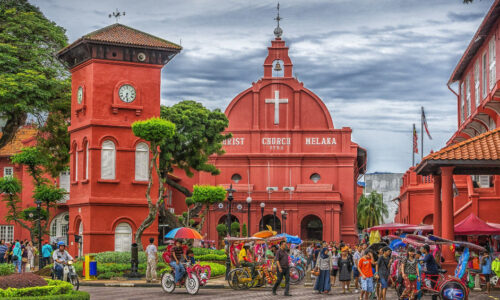Faça o passeio de cruzeiro pelo Rio Melaka e depois faça o transfer para visitar a Porta de Santiago Cir. 1512, Ruínas da Igreja de São Paulo Cir. 1571 e Praça Holandesa. De seguida, fará um passeio turístico em Stadhuys, na Igreja de Cristo, na Torre do Relógio, na Fonte Rainha Vitória e no Templo Cheng Hoon Teng. Depois, passe pela Igreja de São Pedro e por filas de pitorescas lojas construídas antes da guerra. Atravesse o histórico Rio Malaca e Bukit Cina, com antigos túmulos ornamentados da Dinastia Ming. Desfrutará de um curto passeio de triciclo e terminará o seu passeio com um passeio pela Jonker Street, conhecida pelas suas lojas de antiguidades.