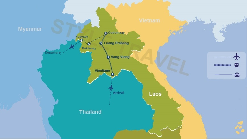 Vientiane – Vang Vieng – Luang Prabang – Oudomxay – Pakbeng – Huayxay