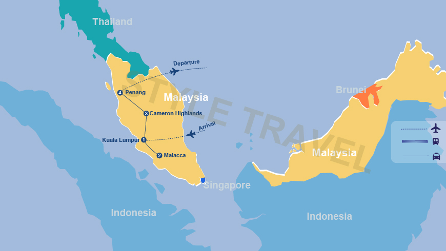 Chegando ao Aeroporto Internacional de Kuala Lumpur, será transportado por estrada para Malaca, com uma viagem de 02 horas. À chegada, faça o check-in no hotel para um breve descanso. Livre no lazer.