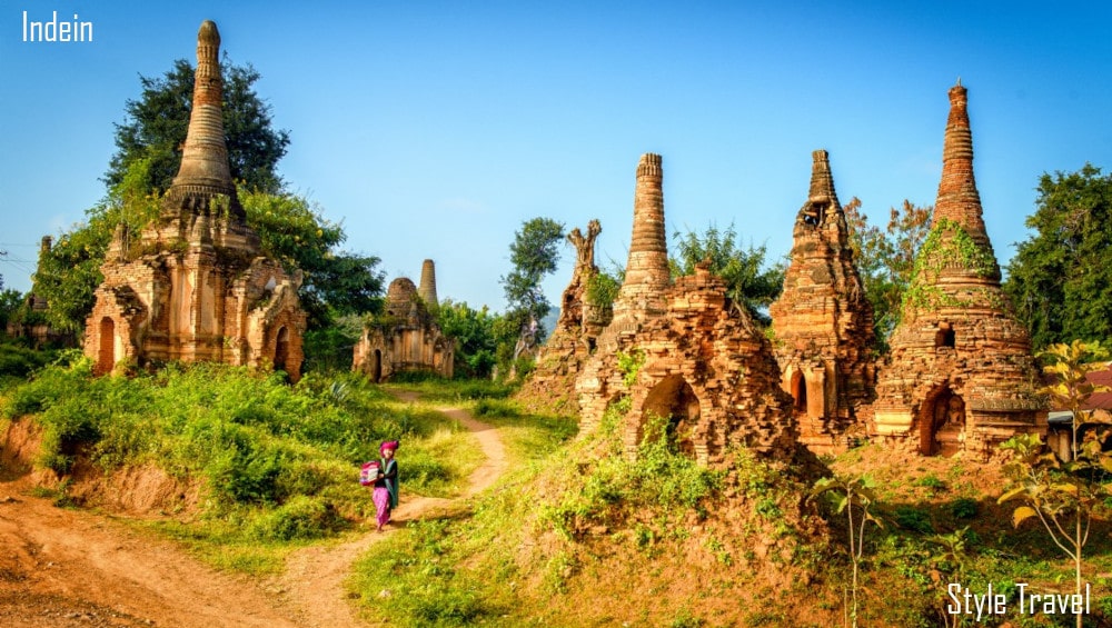 Visite o Pagode Indein, que fica perto do riacho Indein. É estreito e tem muitas curvas e voltas. Os arrozais em redor do riacho recebem água do riacho. De tarde, transporte para a aldeia tribal de Pa O Hill através de um pequeno canal e passagem por belas paisagens. Depois de visitar um mercado local, aproveite para caminhar até às impressionantes ruínas que contêm centenas de pagodes antigos, alguns dos quais estão escondidos na vegetação exuberante.