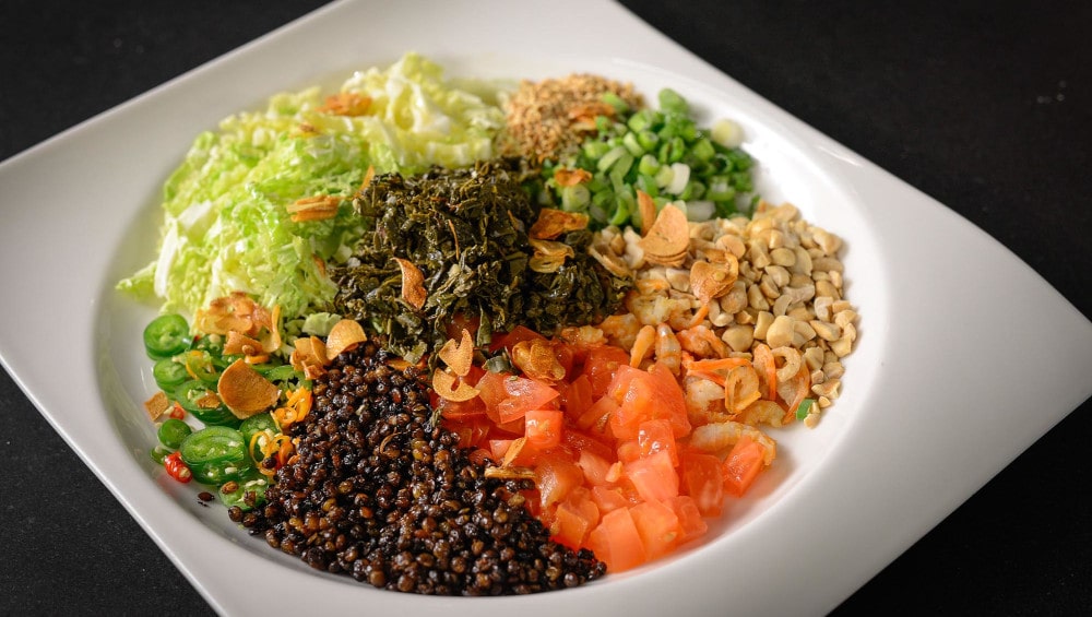 O ingrediente principal deste prato é o tofu. Em vez de fermentar a soja, como é costume, o tofu fabricado neste país é feito de lentilhas amarelas e feijões verdes. As fatias de tofu são normalmente servidas com noodles amarelos, quentes na sopa ou frias ao lado dos pauzinhos.