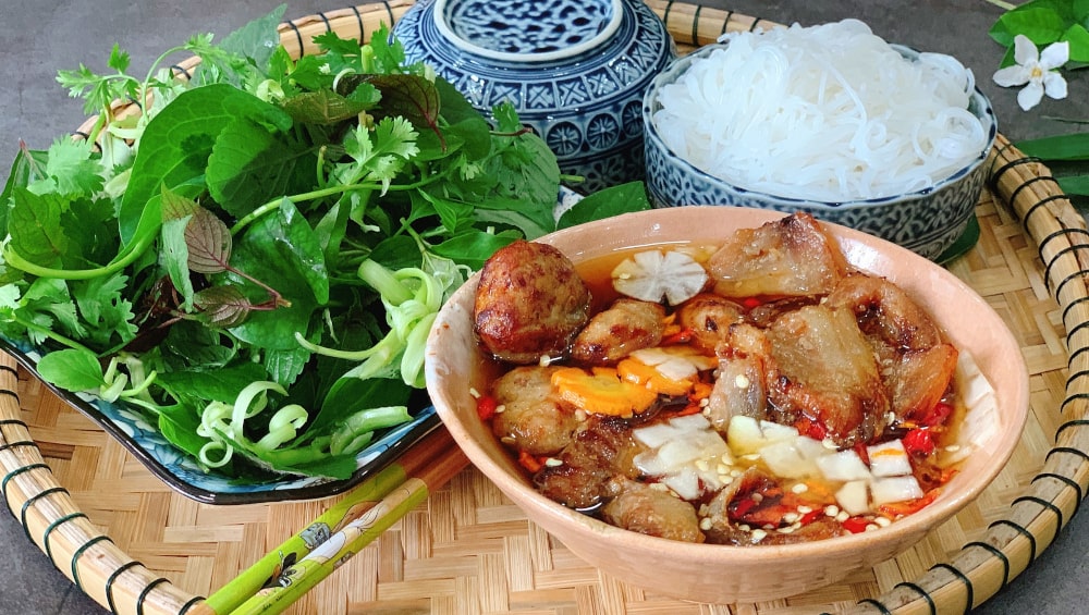 Bun Cha é uma perfeita harmonia de sabores ácidos, picantes, salgados e doces. Este prato é composto por três ingredientes principais: carne de porco grelhada, macarrão de arroz e um molho agridoce. Apesar da simplicidade de seus ingredientes, o sabor é tudo, menos básico. Quando servido, a carne de porco assada e o macarrão se misturam maravilhosamente, com o macarrão se agarrando enquanto a carne de porco desmancha suavemente no molho.