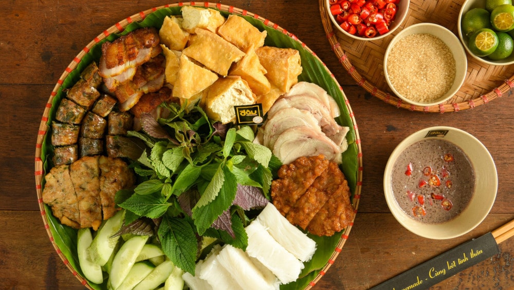 O Bun Dau Mam Tom é um prato que apresenta tofu frito, vermicelli de arroz fino, pepino e ervas frescas, todos unidos por uma pasta distinta de camarão fermentado conhecida como Mắm Tôm. Esta especialidade regional é considerada única e tem suas próprias peculiaridades. Para aproveitá-la ao máximo, é recomendado espremer alguns kumquats e adicionar pimentas ao molho de camarão, mexendo até que fique espumoso—essa preparação é o que torna a experiência de Bún Đậu Mắm Tôm realmente deliciosa.