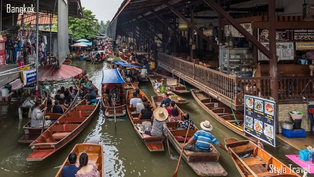 Transferência para o sudoeste de Bangkok – uma área verde e úmida, cheia de canais, altamente fértil e repleta de plantações de coqueiros e pomares de frutas. Você entrará no mercado flutuante de Damnoen Saduak em um barco de cauda longa, navegando por um labirinto de canais estreitos entre os pomares. Após o almoço, visita ao famoso Mercado Ferroviário de Maeklong, onde a maioria das barracas é colocada sobre os trilhos. Quando o trem passa, todos os vendedores devem mover suas barracas, mas logo retornam à normalidade.