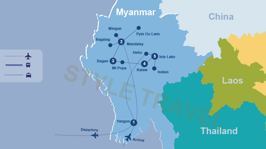 Yangon – Mandalay – Bagan – Mt Popa – Kalaw – Lago Inle