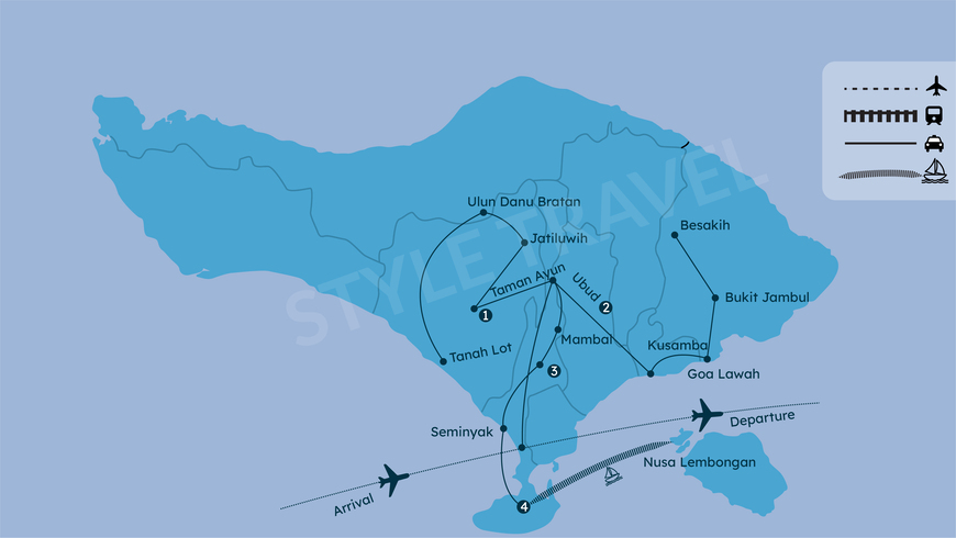 Visitará a Ubud. O primeiro local será o Templo Taman Ayun. A partir de Taman Ayun, a bússola segue em direção a Jatiluwih para apreciar uma bela vista dos terraços de arroz do sul de Bali. Depois disso, transporte para Bedugul, onde visitaremos o Templo Ulun Danu Beratan, o famoso templo que se encontra num pequeno promotor localizado no pomar do Lago Beratan. Por fim, assista ao pôr-do-sol no Pura Tanah Lot e depois regresse à sua cidade natal. Pernoite em Ubud.