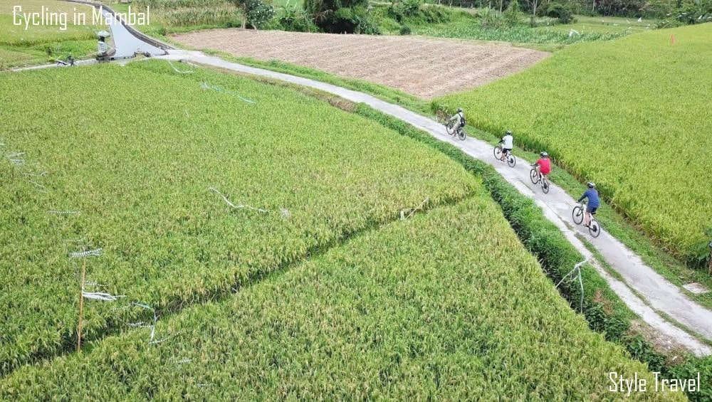 Irá fazer um passeio de bicicleta de 2 horas para sul do movimentado centro de Ubud, passando pela aldeia de Mambal, onde verá o singular Subak em ação e passeará pelos seus arredores rústicos e exuberantes. Enquanto pedala, verá belos arrozais, barragens e cascatas, fará uma paragem no rio Ayung, passará pela Bali Green School e pedalará por pequenas aldeias. Pernoite em Seminyak.
