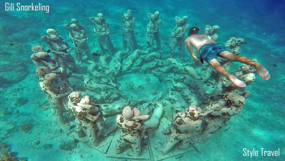Participe num passeio de snorkeling para explorar Gili Meno e Gili Air. No caminho, pode fazer snorkeling no barco em Gili Meno. Após o almoço, participe num mergulho de snorkel e alimente os peixes em Gili Air, passe algum tempo a brincar com muitos peixes amigáveis e depois regresse ao seu hotel na Ilha Gili.