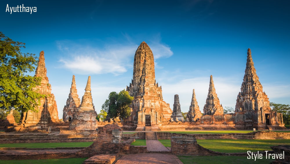 Traslado até Ayutthaya. Visita ao Palácio de Verão Bang Pa-In, usado como retiro real no século XVII. Em seguida, visita ao Wat Yai Chai Mongkol, com uma das maiores imagens de Buda Reclinado, e às ruínas do antigo Grande Palácio Real e templos. Continuação para Wat Mahathat e Wat Na Phra Men e depois faça um cruzeiro de regresso a Bangkok. Almoce e testemunhe a beleza do Rio Chao Phraya e a vida rural ao longo das duas margens do cruzeiro.