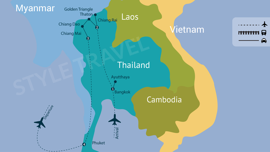 Bangkok – Ayutthaya – Chiang Rai – Triângulo Dourado – Chiang Mai – Doi Inthanon – Phuket