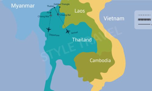 A sua jornada começará em Bangkok, a capital e maior cidade do país, conhecida pelos seus templos ornamentados e cultura de rua ativa. Após passar dois a três dias aqui, pegará um voo para Chiang Mai ou Chiang Rai, duas cidades montanhosas do norte com muitas atrações turísticas. Depois, pegará um voo para a Ilha de Phuket ou Krabi para visitar as praias deslumbrantes com longas faixas de areia branca e terminará a sua jornada aqui.
