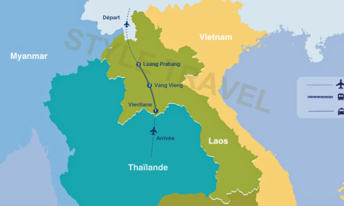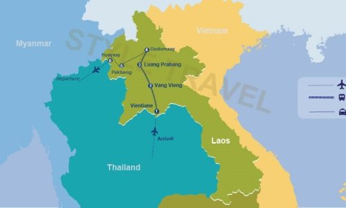 Chegar ao aeroporto em Vientiane, a capital do Laos, onde encontrará uma cidade deslumbrante, repleta de vilas e avenidas, deve ser o início da sua viagem. Depois de passar um ou dois dias a visitar a cidade, irá apanhar um comboio expresso para Vang Vieng, onde poderá participar numa variedade de atividades, incluindo caiaque e trekking. De seguida, seguirá para Luang Prabang, Património Mundial da UNESCO com um centro histórico preservado, de comboio expresso e terminará a viagem aí.