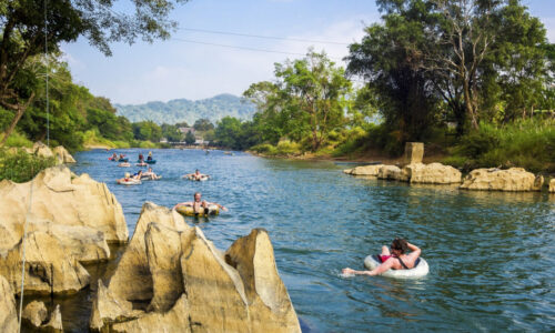 Em Vang Vieng, os visitantes podem desfrutar de passeios de caiaque e de boia no rio Nam Song, bem como aproveitar os baloiços de corda, tirolesas, piscinas e amplos terraços para socializar. Muitas aldeias étnicas dos povos Lao, Kmou e Hmong também se encontram a uma curta distância da cidade, e a Quinta Orgânica de Vang Vieng está situada na aldeia de Phoudindaeng, a cerca de 4 km a norte. Os visitantes podem participar em várias atividades em Vang Vieng e viver muitas experiências inesquecíveis.