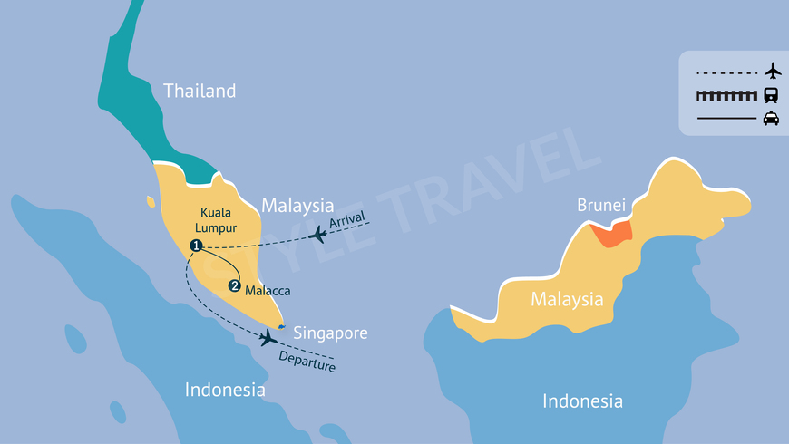 Chegando ao Aeroporto Internacional de Kuala Lumpur, será transportado por estrada para Malaca, com uma viagem de 02 horas. À chegada, faça o check-in no hotel para um breve descanso. Livre no lazer.